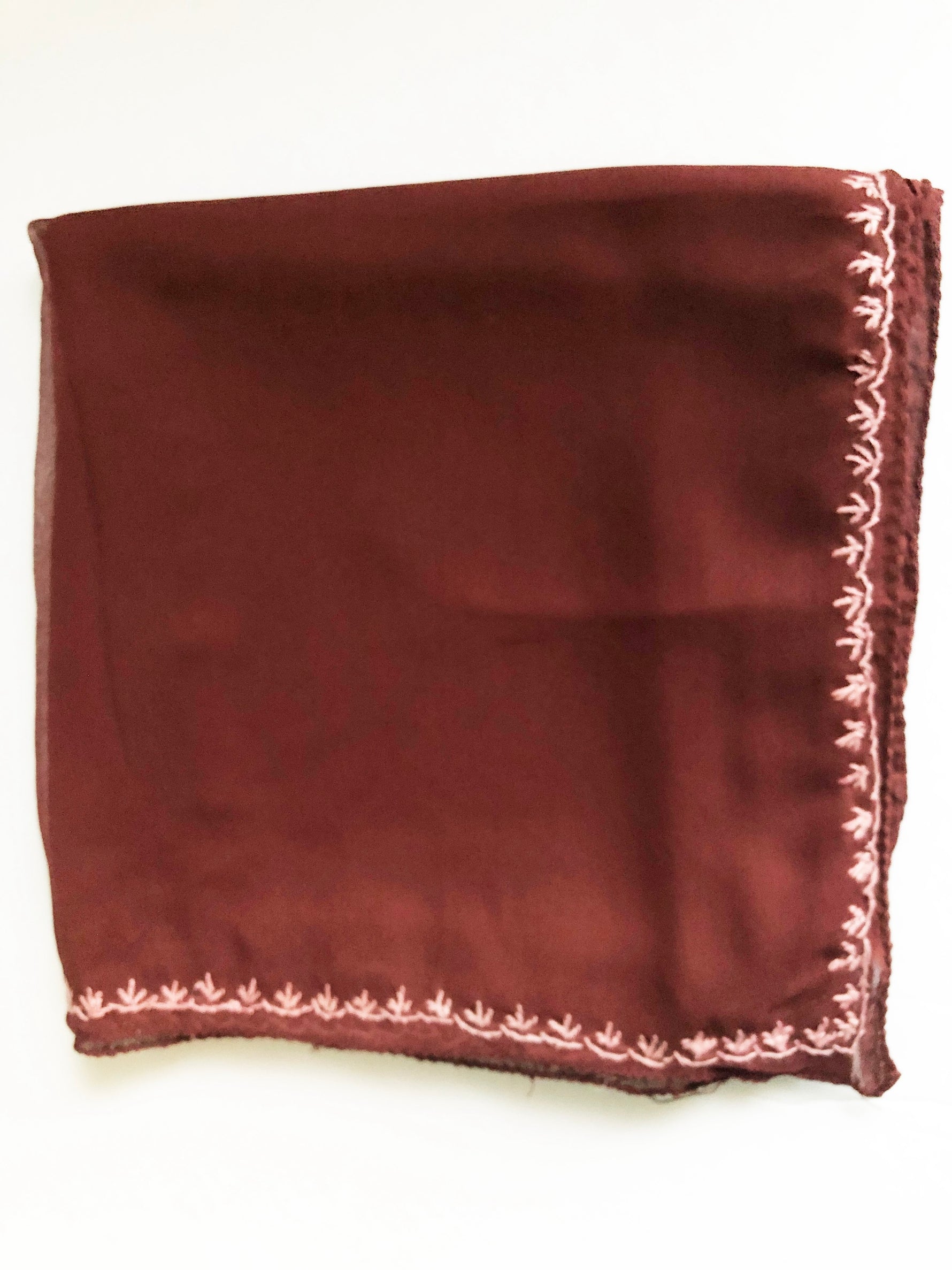 Beautiful Hand Embroidered Square Scarves made in fine sheer georgette/chiffon fabric with chikan thread work which is a unique form of hand embroidery dating back to the 17th century in India.