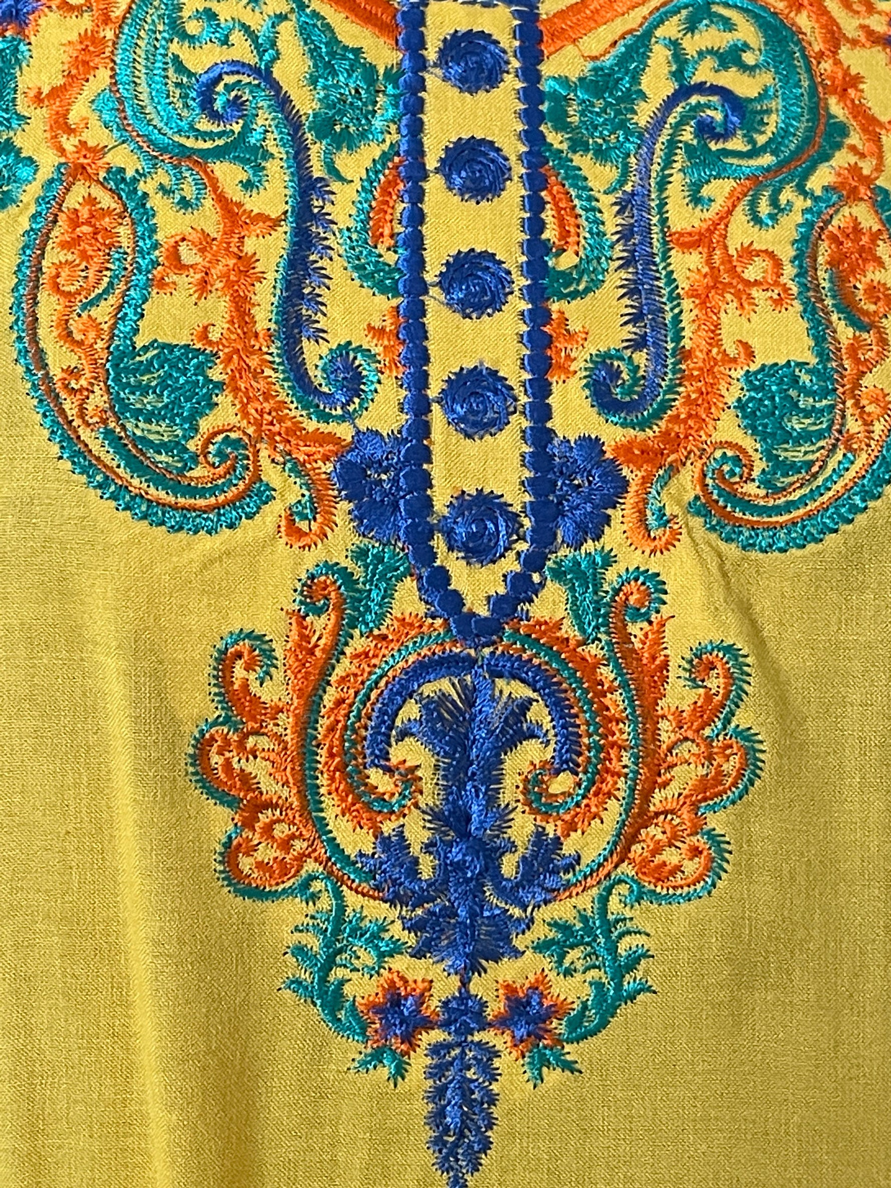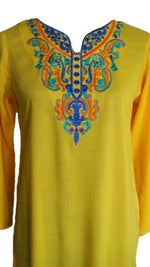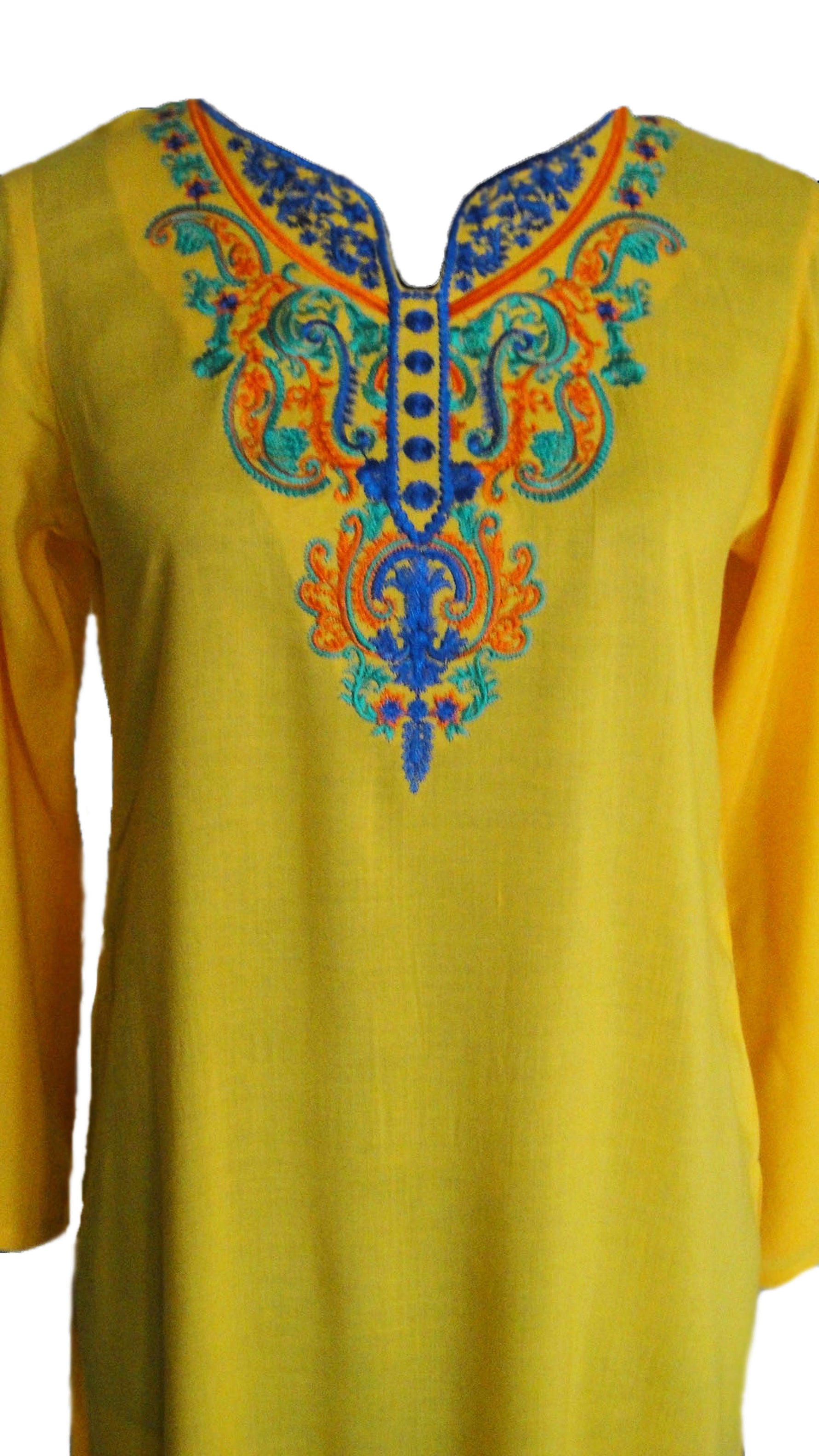 Beautiful embroidered Kurti Top, Long Tunic dress in brick orange colour with elegant embroidery ideal for casual or evening wear.